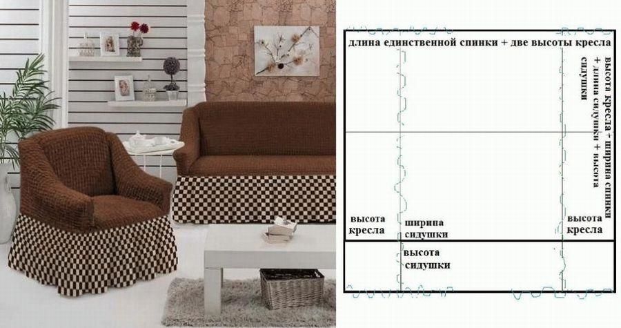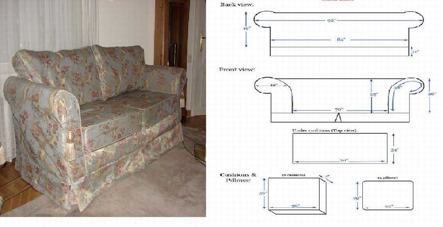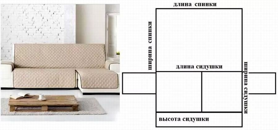 Чехол для дивана в виде накидки. Такой вариант выкройки несложный, для которого необходимо измерить длину, ширину спинок и сидушек.