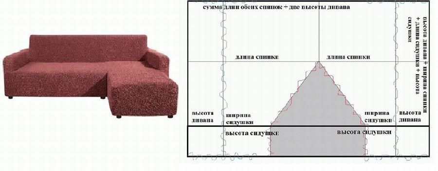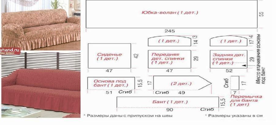 Еще один вариант пошива чехла для дивана с воланом. Размер выкройки, конечно, зависит от габаритов вашего дивана.