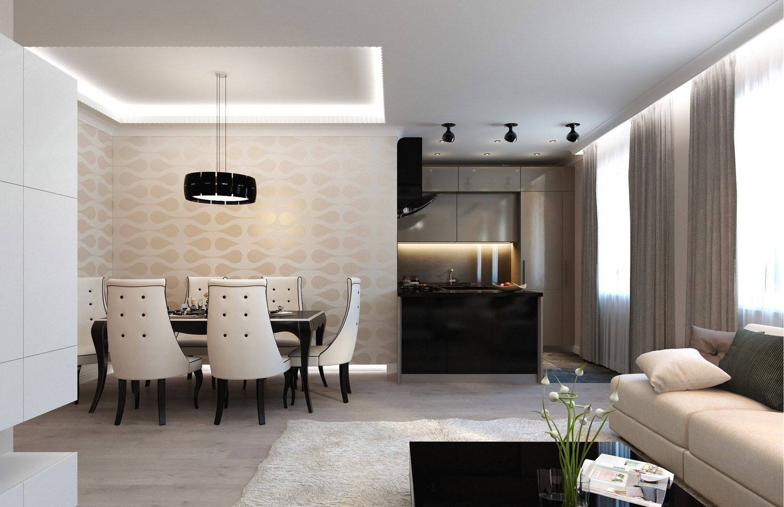 Ниша под зону столовой может быть создана и намеренно, с целью зонирования. В этом случае диванчик часто тоже является стационарным или, по-другому говоря, встроенным.