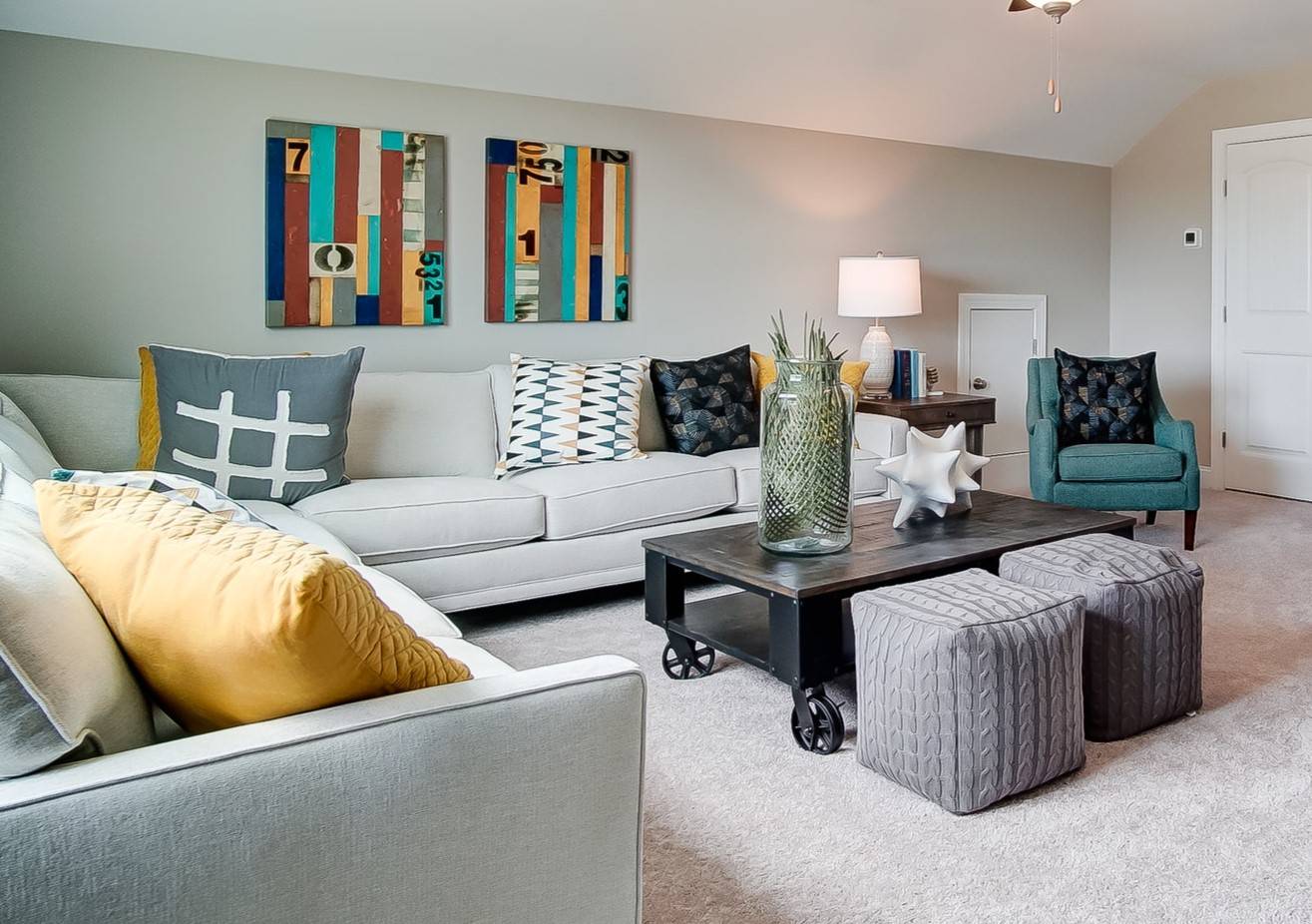 - Нейтральный диван в ярких стенах придаст равновесие динамичному интерьеру.