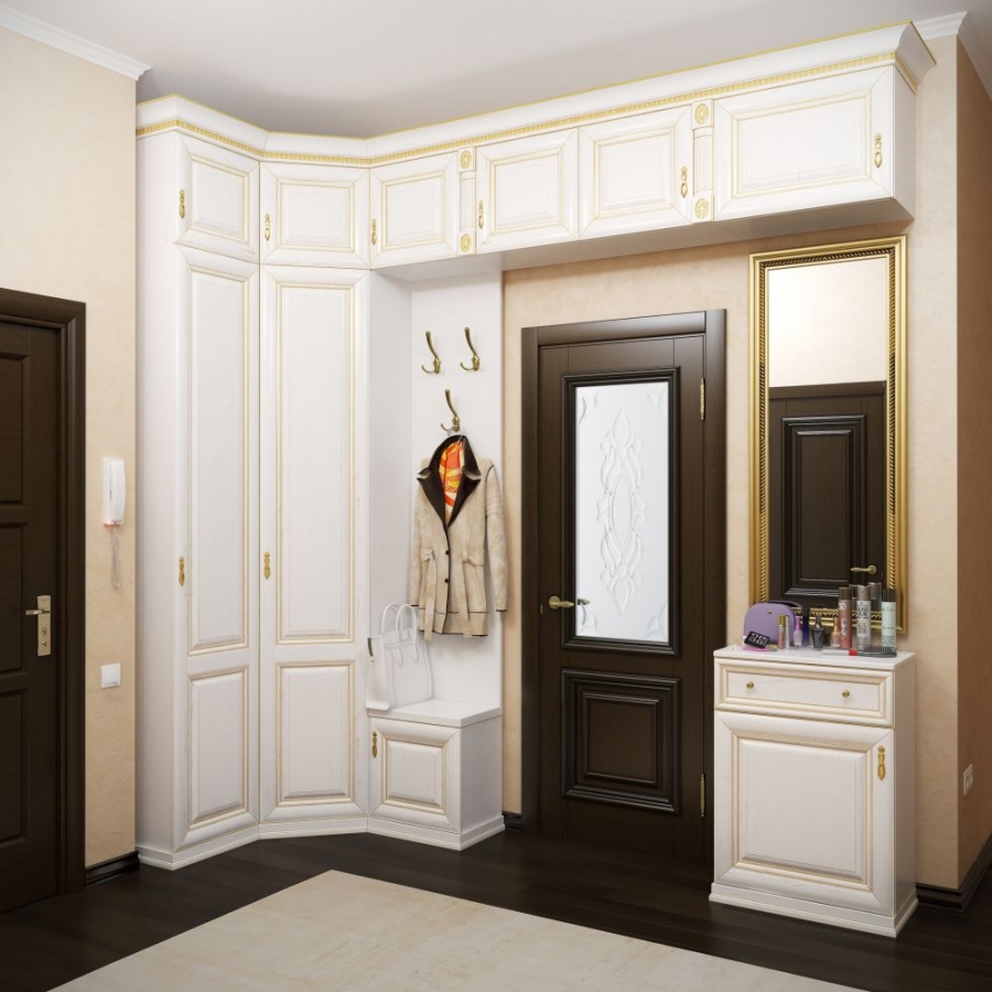 В маленькой прихожей идеален выбор углового шкафа (можно оценить по фото).
