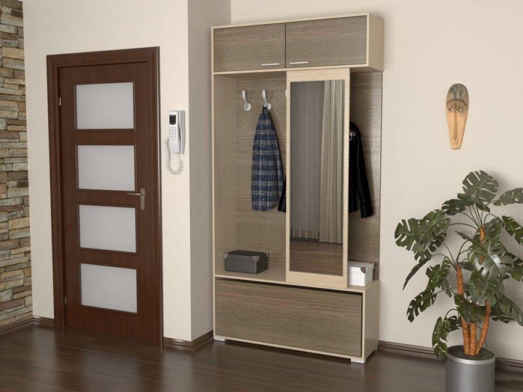 Для маленькой прихожей мебель выбирается в зависимости от ее габаритов. При наличии всего лишь пары квадратных метров, стоит остановиться на минимальном варианте:
