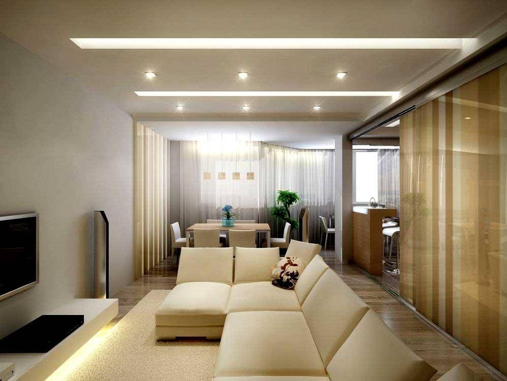 Светильники, расположенные на потолке возле стен маленькой комнаты, в вечернее время сохранят ощущение простора.