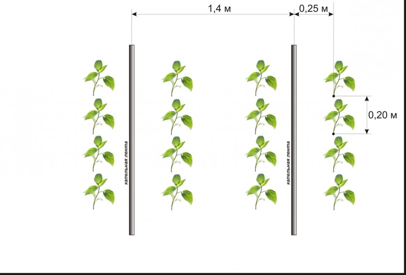 Рассаду перцев высаживают (садят) в один ряд вдоль стен теплицы или в два ряда по центру. Оптимальная ширина однорядных грядок 45-50 см, двухрядных — 90 см. Расстояние между кустами зависит от сортовых характеристик. Чем выше и гуще растение, тем больше это значение (см. графические схемы посадки перца в теплице).