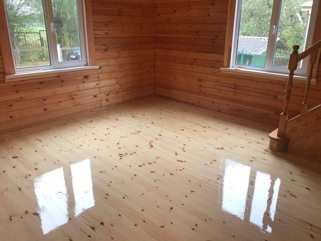 Черновой пол можно покрыть ламинатом или линолеумом. Чистовой же вариант необходимо отциклевать и залакировать.