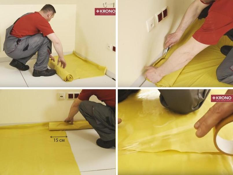 При использовании современной подложки, которая уже является паробарьером (к примеру, «Туплекс»), важно обеспечить герметичность стыков. Обычную же пленку следует укладывать с нахлестом 15 см и последующей проклейкой стыков скотчем