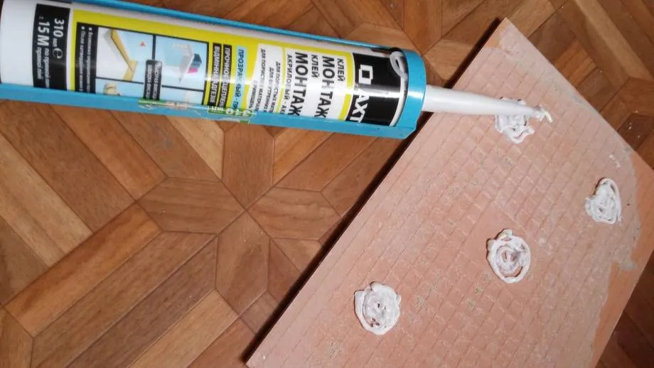 Это дорогой способ крепления. Обычно влагостойкие жидкие гвозди применяют, если нужно зафиксировать одну или несколько отвалившихся плиток.
