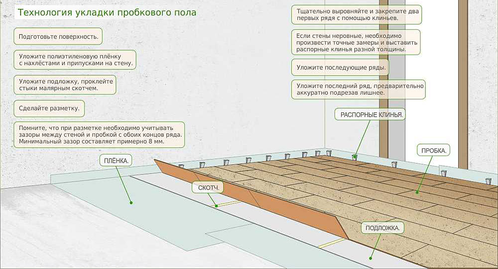 Пошаговая инструкция по укладке пробкового ламината