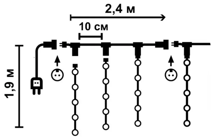 Важное предупреждение! Не включайте в сеть гирлянду, пока вы её не растянули. Она может сразу же перегореть