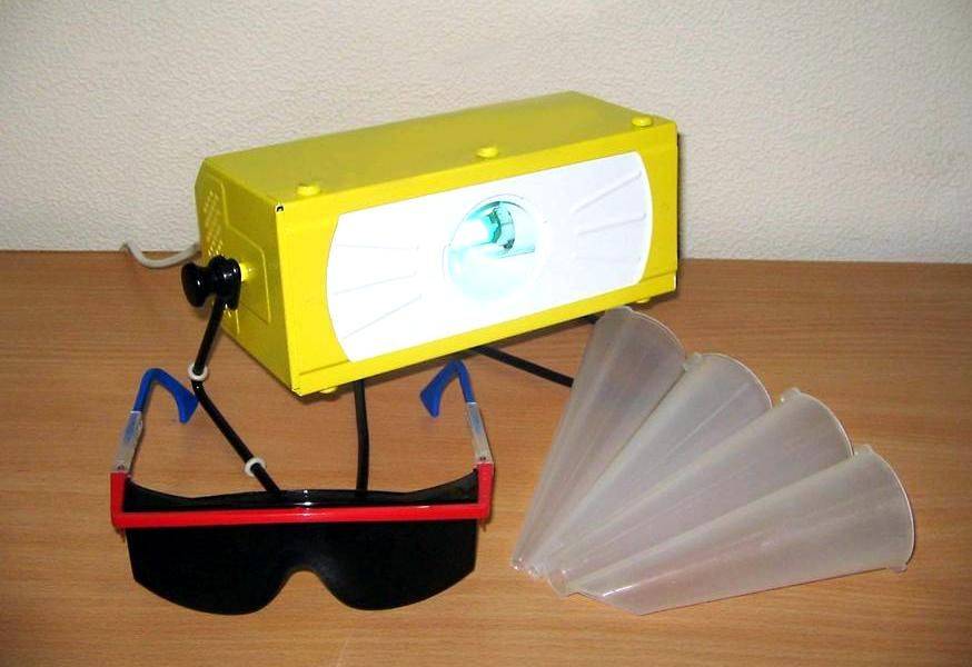 Лампы «Солнышко» способны нанести вред слизистым оболочкам, поэтому нужно строго придерживаться инструкции по эксплуатации. Так как в наборе имеется только одна пара очков, а купить их отдельно нельзя, данный нюанс можно отнести к еще одному недостатку этих приборов.