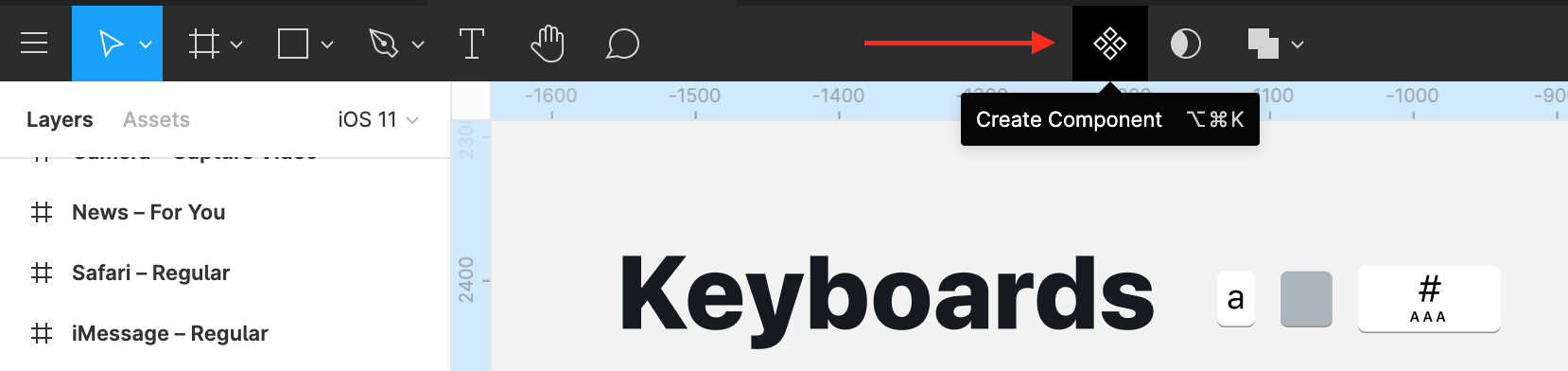 Сделайте пустой файл, который станет библиотекой, и наполняйте его компонентами. Вначале нарисуйте составные части компонента. Затем выделите их и щёлкните Create Component в верхней панели.