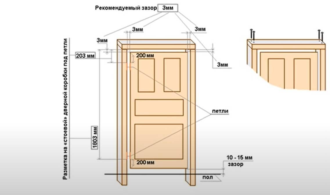 Схема монтажа дверных петель.