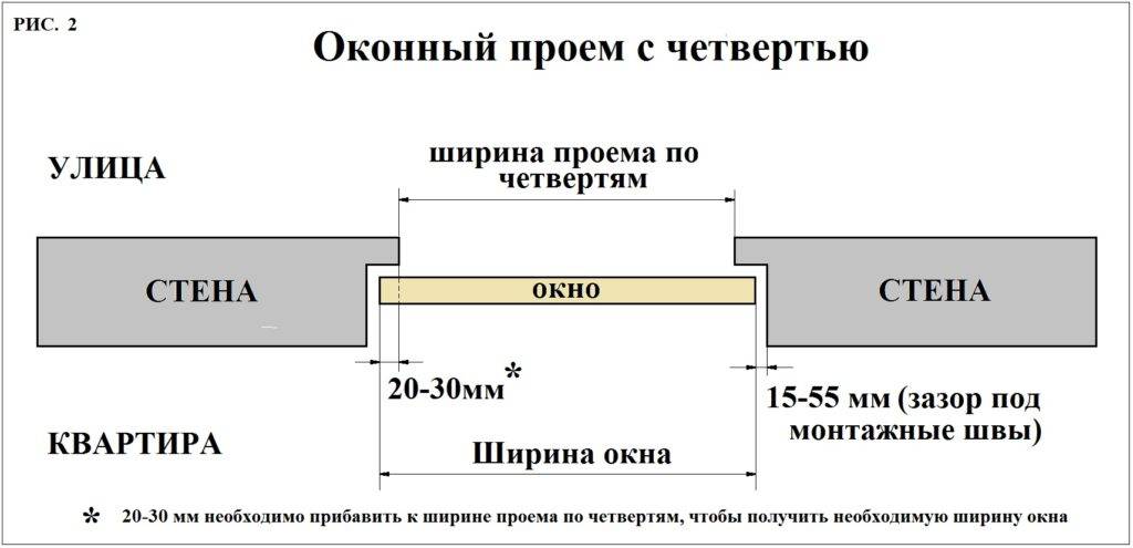 Из полученных размеров вычитаем, если окно без четверти: