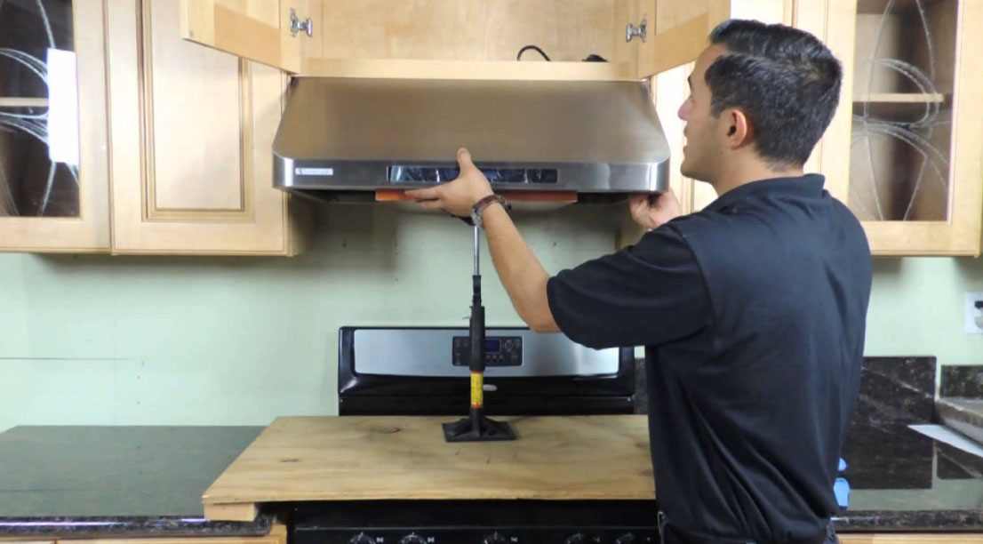 Как установить встраиваемую вытяжку в шкаф большого размера?