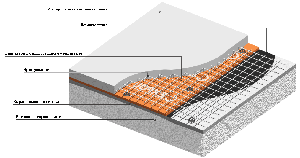 - финишная выравнивающая стяжка выполняется под финишное покрытие.