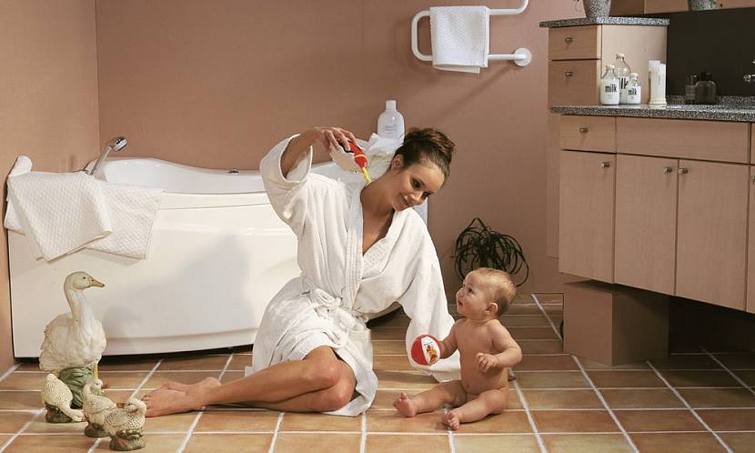 В санузле всегда влажно. В помещениях этого типа часто начинает расти грибок и плесень, поэтому ванную и туалет часто обрабатывают довольно агрессивными химическими средствами. Дерево не способно «пережить» такого количества химии, без серьезной защитной обработки. Поэтому для санузлов лучше обустраивать бетонную стяжку, на которую опять же можно уложить плитку.