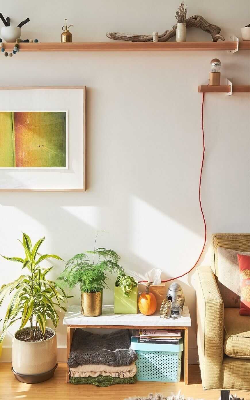 Горшки с растениями. Причем совершенно необязательно заставлять ими весь дом – нескольких горшков на окне и большой кадки в гостиной вполне достаточно;