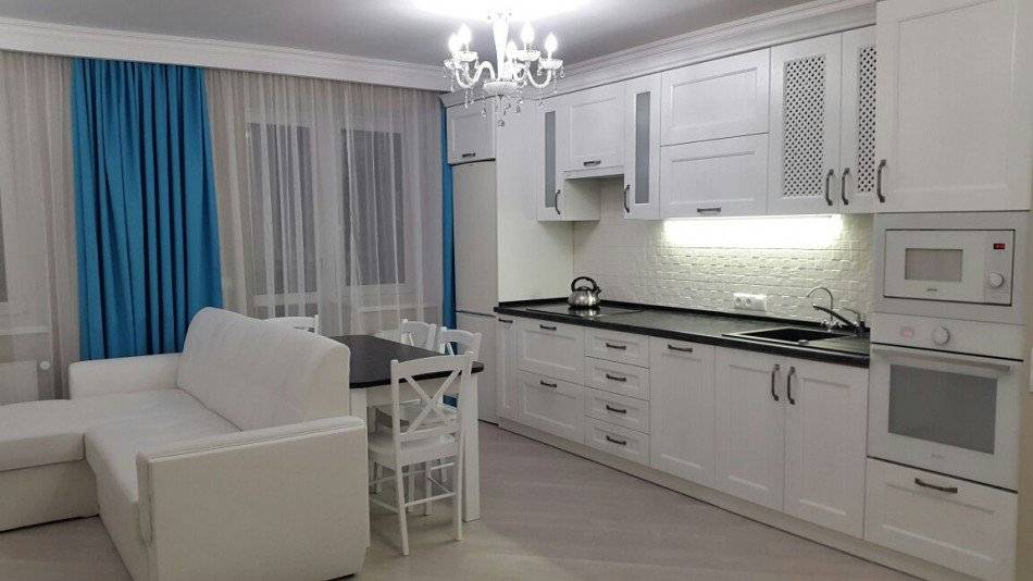 Среднегабаритные и полноразмерные конструкции имеют длину больше 1.5 м. На них спокойно расположится несколько человек. Прекрасно они будут смотреть в объемных кухнях. Касательно ширины диванчика, то у выкатных моделей она начинается с 65 см, а у мягкой мебели с механизмом «евро-книжка» от 90 см.