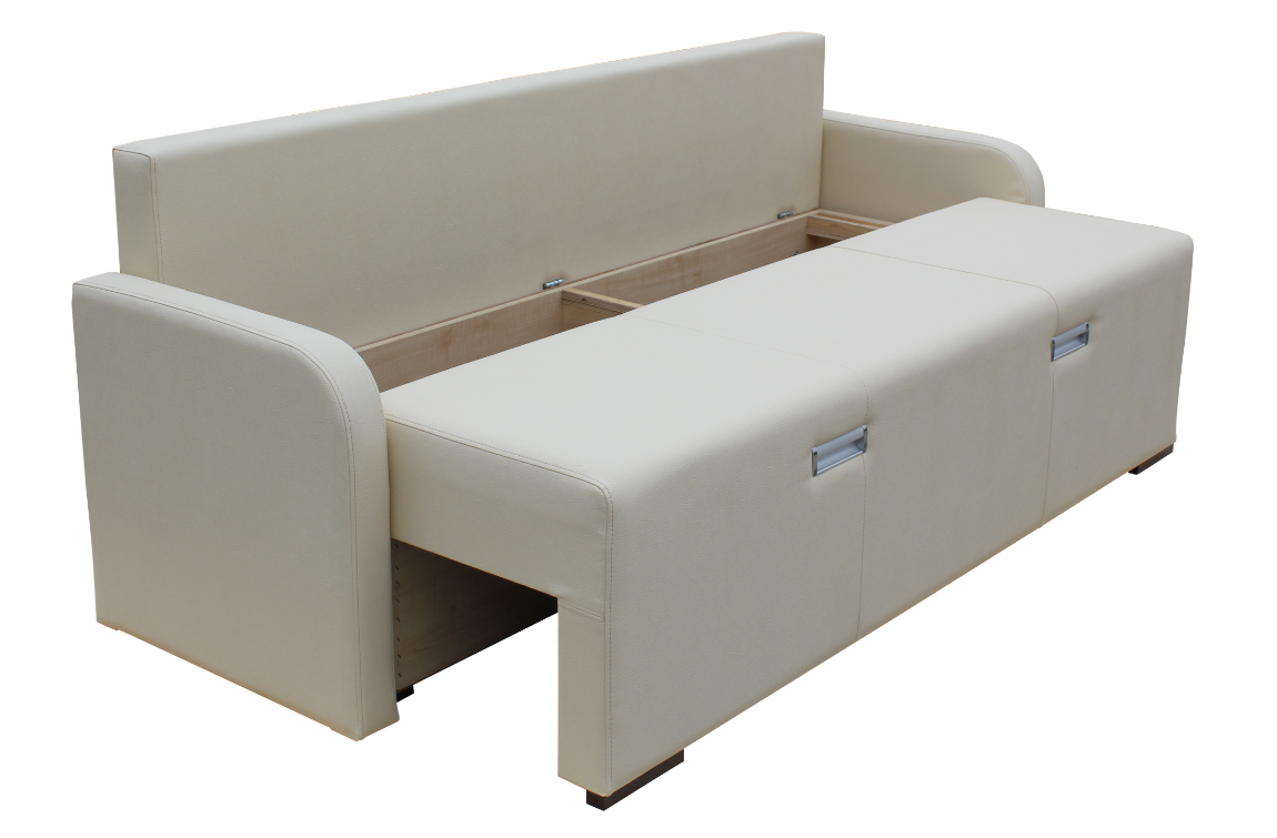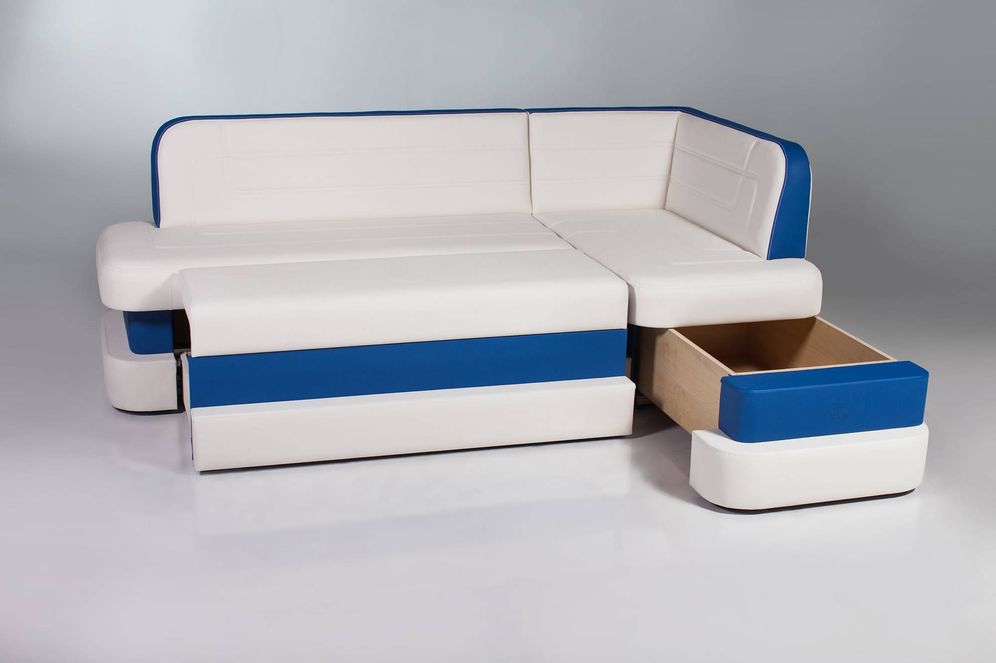С ящиком для хранения. Зону хранения имеют большинство диванов для кухни. Зачастую ящики открываются подъемом сидения и имеют фиксатор положения в открытом виде. Для частого пользования, чтобы не приходилось отодвигать стол, разработаны подъемные механизмы расположенные сбоку. Внутренние размеры ящика на 3-5 см меньше габаритных значений нижней части дивана. Встречается как в простых, так и раскладных моделях.