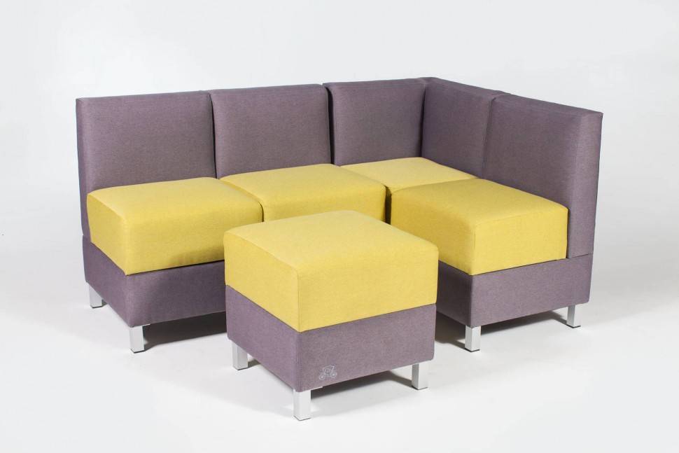 Модель состоит из нескольких деталей, которые переставляются различными способами. Одно изделие способно совмещать в себе и диванчик, и столик, и несколько пуфов.