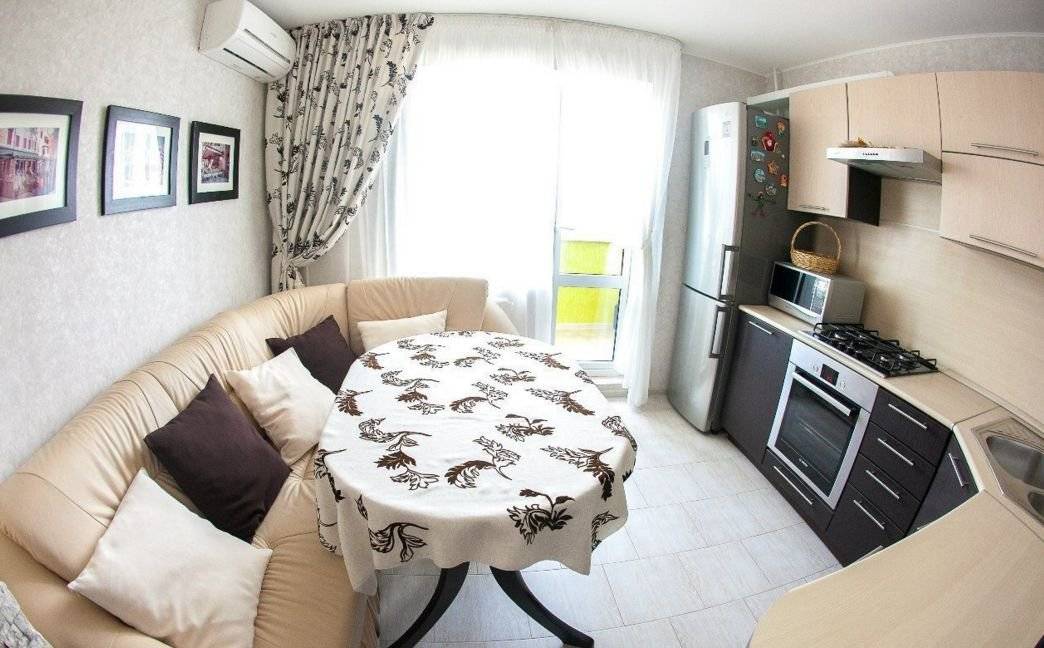 - Если кухня маленькая, а есть необходимость в раскладном диване, нужно следить, чтобы было достаточно места;