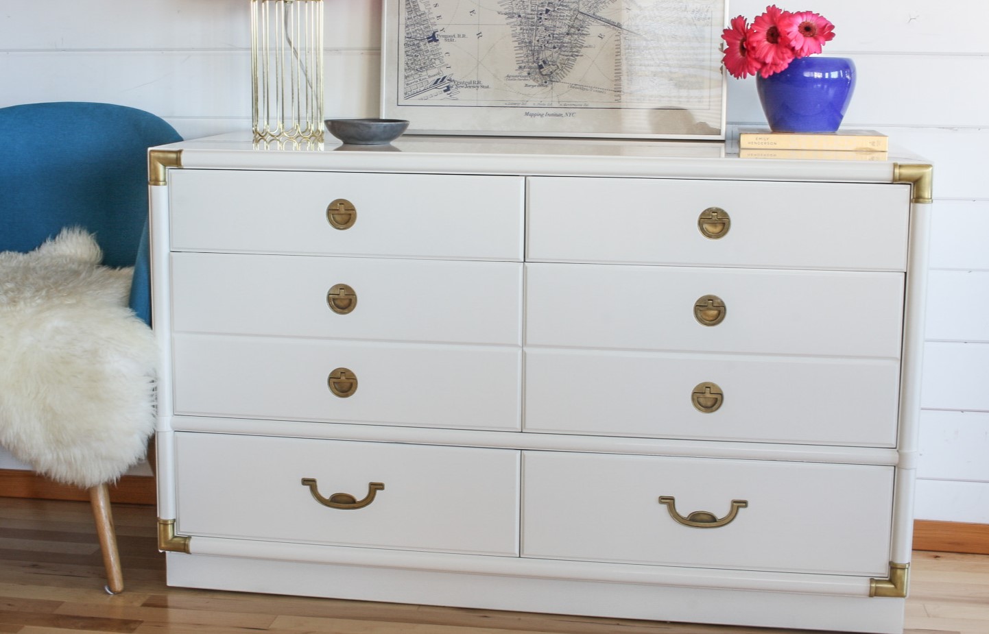 Белый комод из дерева с оригинальными резными элементами