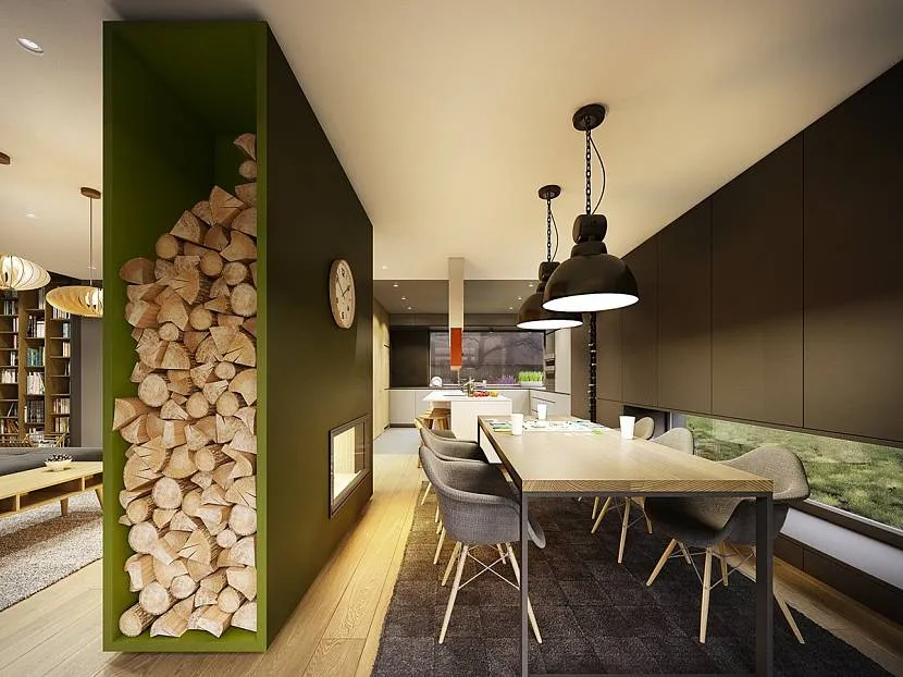Искусственная ниша как декор и полка для хранения дров для каминаИсточник massivnaya-doska.ru