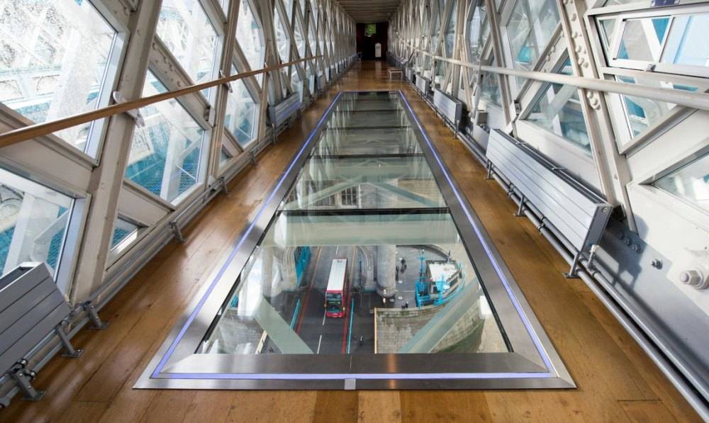 Главная особенность переходов между башнями — стеклянный пол длиной 11 м и шириной 1,8 м. Он позволяет с высоты птичьего полета любоваться на волны Темзы, развод моста, движущийся по нему транспорт и пешеходов.