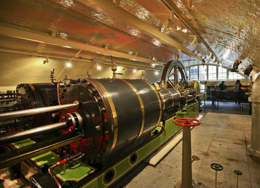 - водяная гидравлическая система с паровыми машинами — на момент строительства;