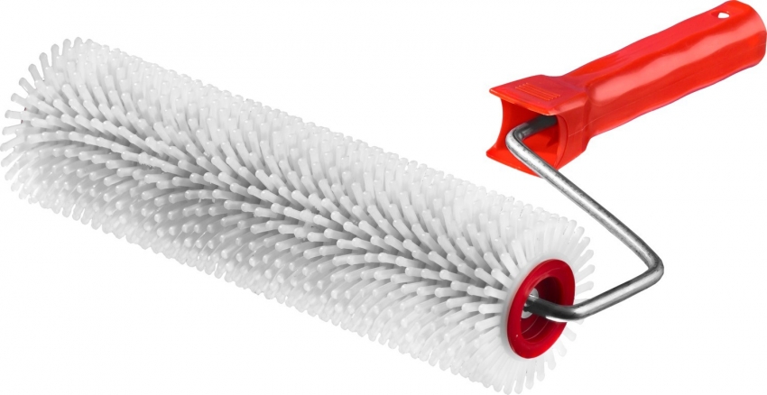 Данный инструмент один из наиболее популярных при проведении отделки фактурной штукатуркой. Основа его цилиндра может быть металлической, резиновой или пластиковой, покрытие делают из ткани или поролона
