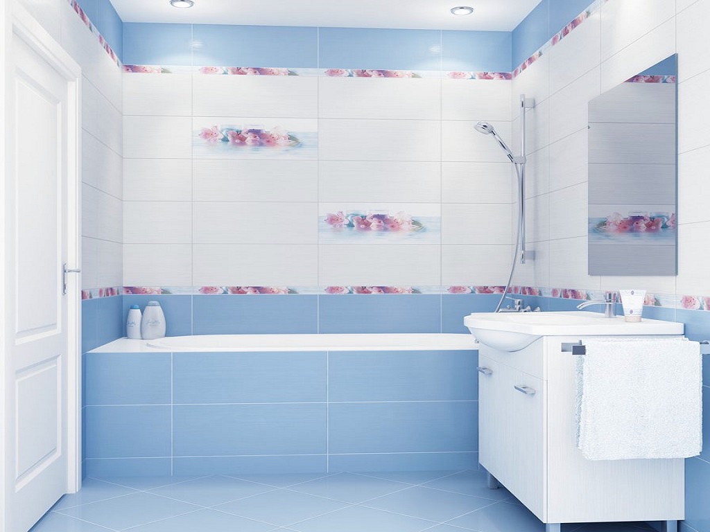 - Правильная укладка настенной плитки (горизонтальная – при высоких потолках и вертикальная – при низких), а также диагональный способ укладки напольного кафеля.