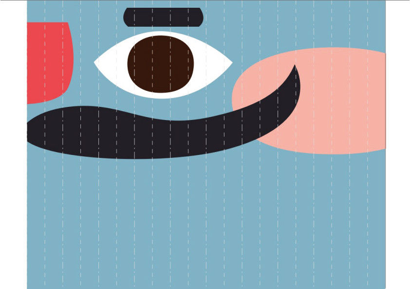 - Строго по центральной линии взрыва делаем разрез. Направление хорошо видно на изнаночной стороне модуля, то есть бумагу надо снова перевернуть. Разрез затронет примерно треть листа, — из этой доли получатся голова с ушками. Средняя часть автоматически превращается в тело.