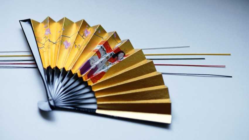 Но больше всего разновидностей появилось в Японии, где не было дефицита бумаги – основы для веера. Здесь известны как привычные для нас лучевые конструкции, так и изделия, полностью изготовленные из бумаги, на ручке, которые в разложенном виде напоминают лист дерева, а в сложенном полностью прячутся в ручку.