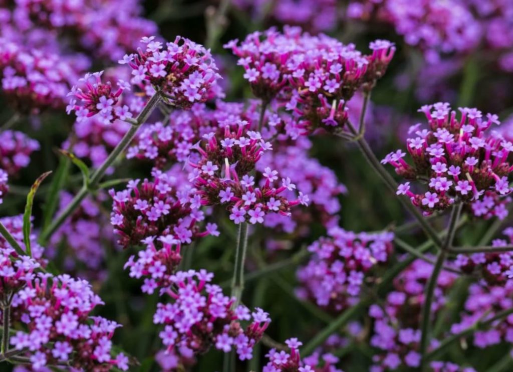 сорта вербены жёсткой: “Даззлинг Найтс” (насыщенно фиолетовая), “Сантос Пёпл” (пурпурная).