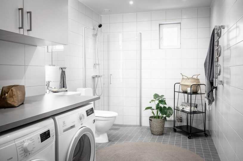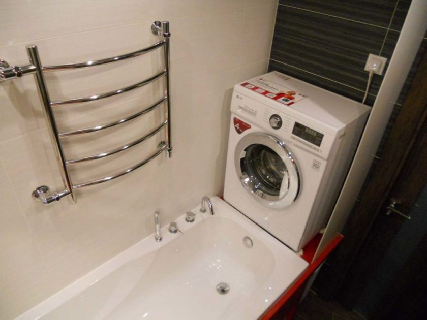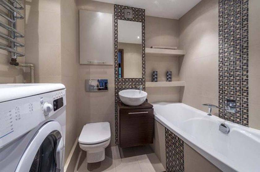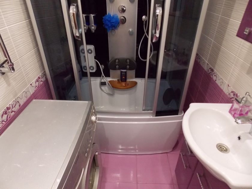 - Во-первых, для экономии места придется пожертвовать объемом купальни и габаритами стиральной машины – выбрать узкую ванну или душевую кабину, а также отказаться от вертикальной центрифуги в пользу компактной фронтальной модели;