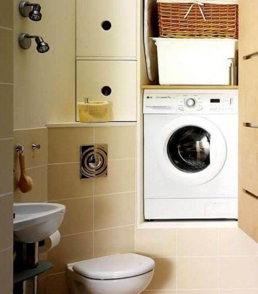 Если таки необходимо установить в санузле стиральную машину, то рассматривайте машину, имеющую боковую загрузку, небольших размеров. Хорошо будет, если стиральную машину для экономии места расположить под раковиной или в тумбе между раковиной и унитазом.