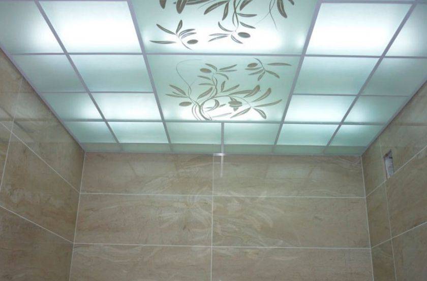 Один из вариантов натяжные потолки либо зеркальные из влагостойкого материала, либо из стекла с подсветкой, которая создает иллюзию расширенного пространства.