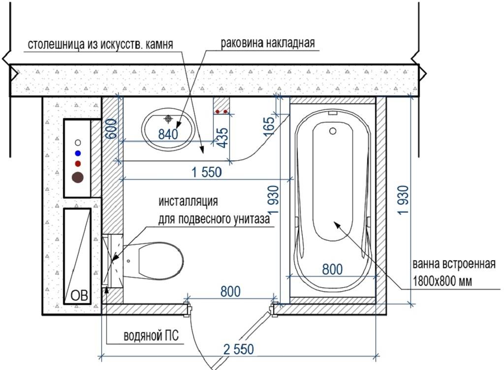 - Обычно в совмещенных санузлах мало места и приходится подбирать сантехнику не ту что нравится, а ту, что подходит по размеру.