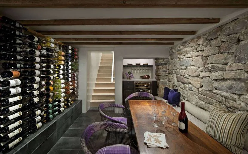 Полки в погребе должны присутствовать двух видов: горизонтальные, чтобы бутылки лежали, и вертикальные, соответственно, чтобы бутылку можно было поставить. Вертикальные полки нужны для того, чтобы ставить туда бутылки за неделю до употребления, чтобы осадок успел осесть. Винные шкафы нужно располагать по периметру подвала, а в центре обычно ставят мини-бар или стол и стулья.