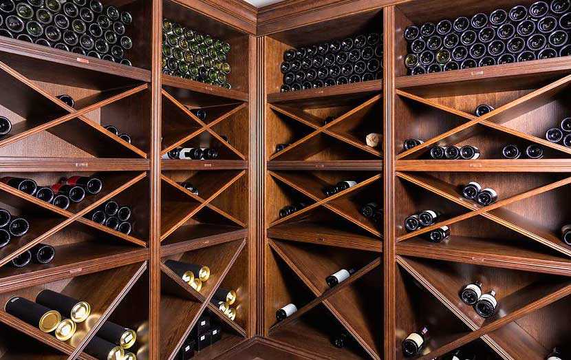 Бутылки с вином должны лежать на боку с погруженной в вино пробкой