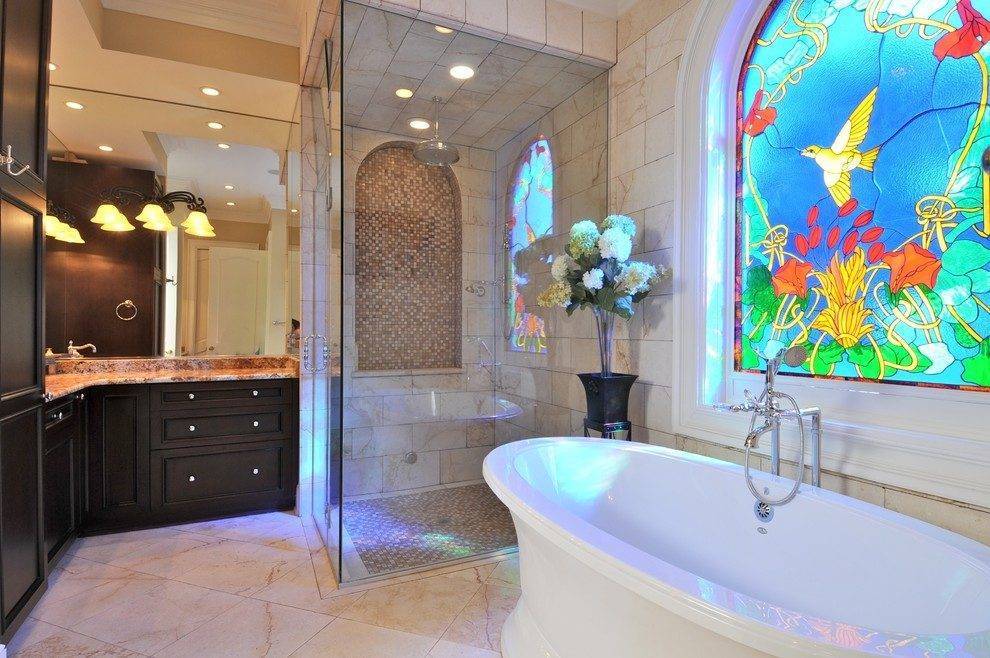 Избавить от лишней освещенности можно с помощью цветных витражей.