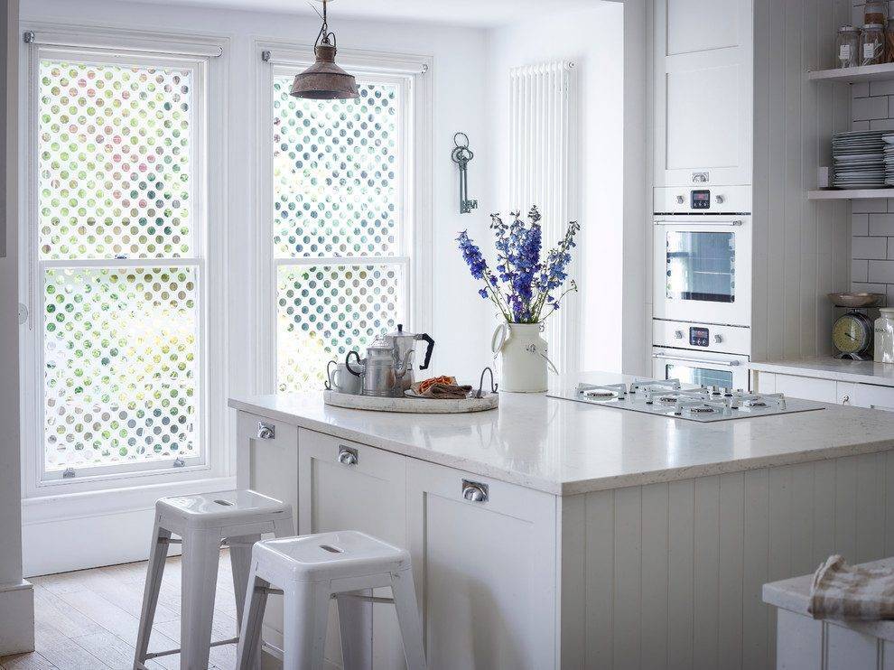 Эффектно смотрятся не только красивые цвета, узоры, перенесенные на пленку в виде витража, но и нежный туман, прозрачные изображения, создающие интерьер более интимный.