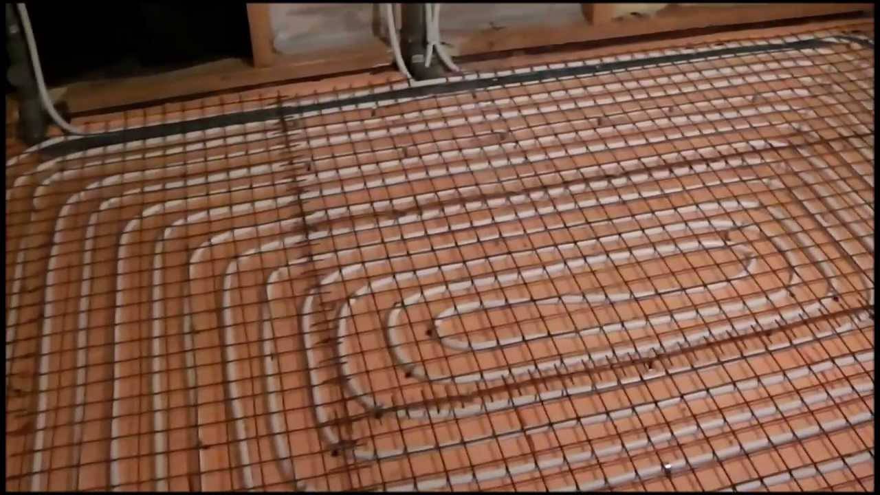 Важно производить заливку на теплые трубы, пока они находятся в расширенном состоянии, чтобы потом при нагревании не порвали бетон