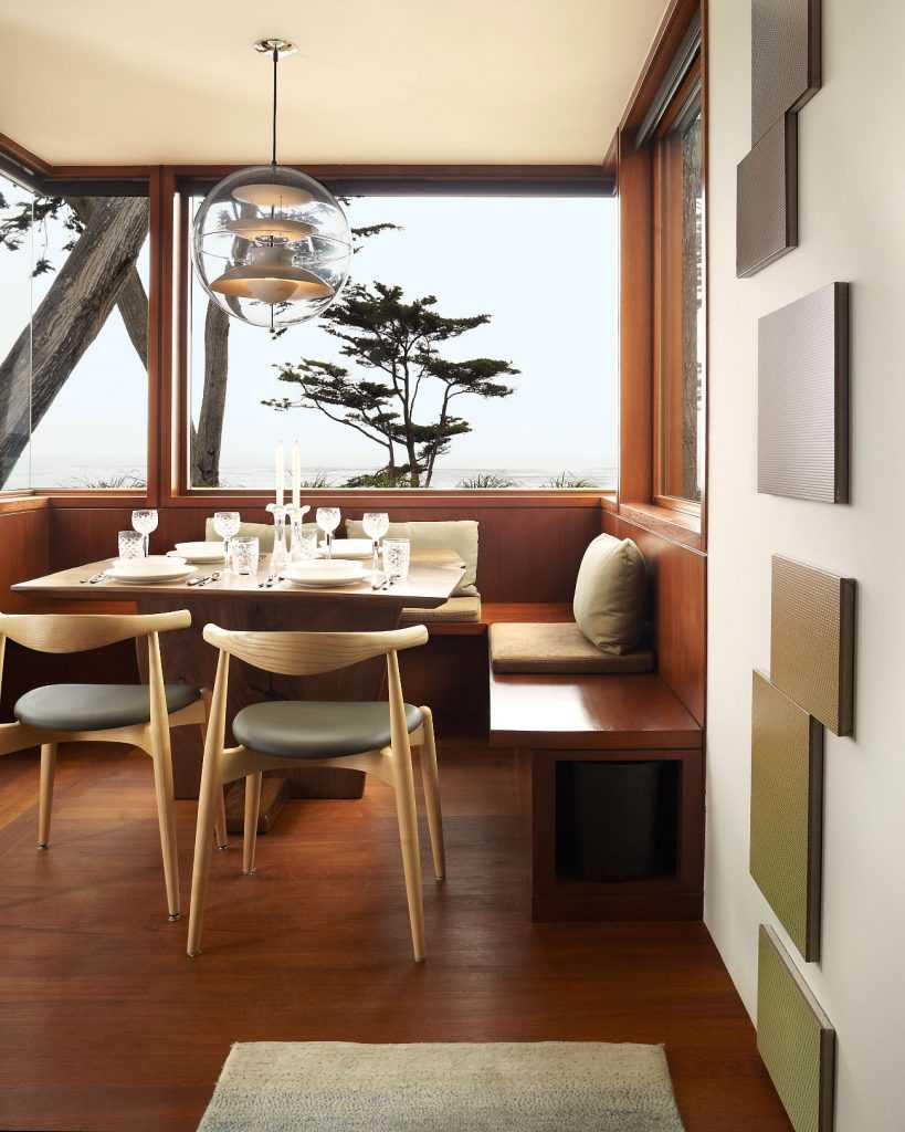 Выбирая размер полок, необходимо учитывать определенные стандарты: высота и глубина сиденья мягкого уголка на кухне в среднем должна составлять 40-45 см. Применение полок удобно тем, что вы можете легко создать не только Г-образную конструкцию, но и П-образную, если для этого располагает площадь и планировка помещения.