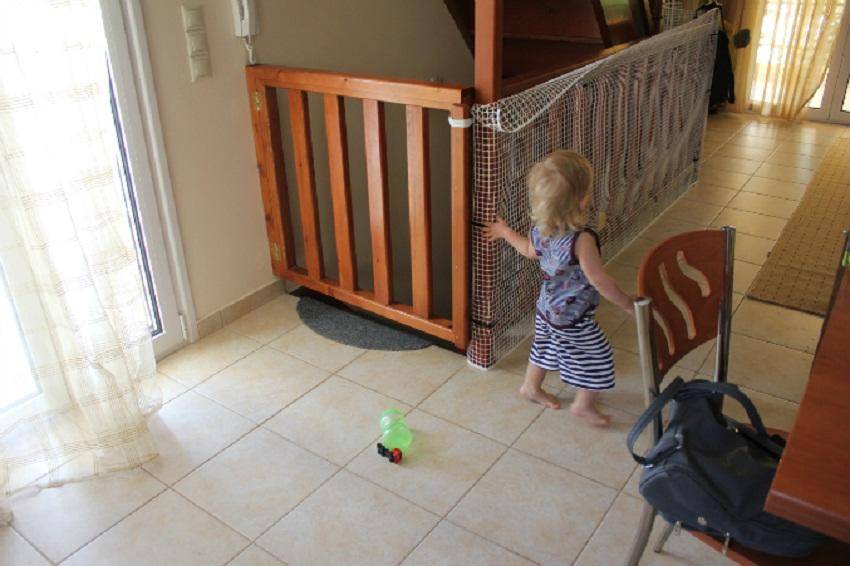 Лучший способ обезопасить ребенка от падений с межэтажных конструкций – это ограничение его перемещения по лестницам в отсутствие взрослых. Для этого в строительных и мебельных отделах можно найти специальные калитки и ограждения, которые ограничат доступ детей в опасную зону.