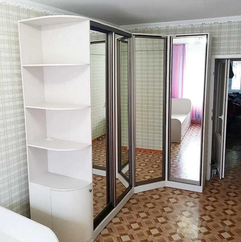 Радиусные шкафы имеют оригинальную форму и систему открывания. Такой красивый шкаф-купе изготавливается по индивидуальному заказу и стоит соответственно.