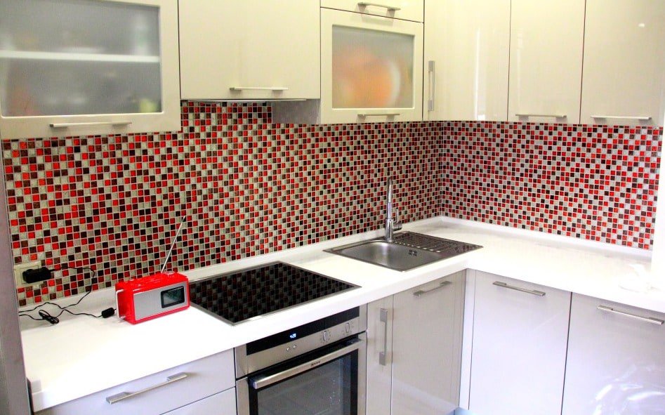 Фартук рабочей, кухонного зоны в мозаикеИсточник remontkit.