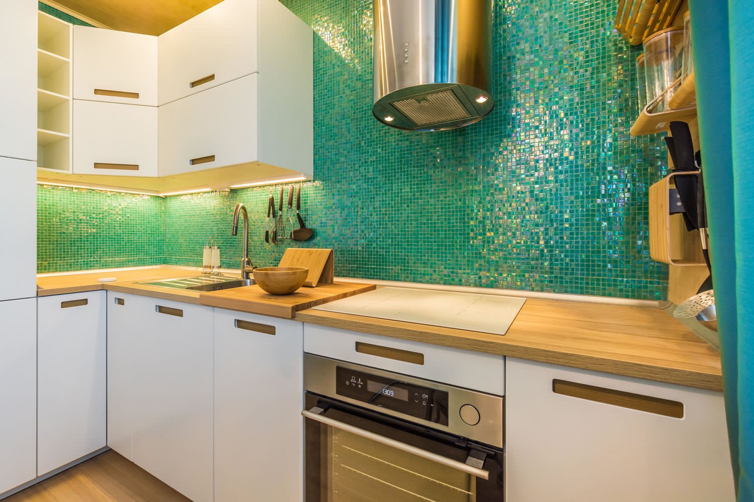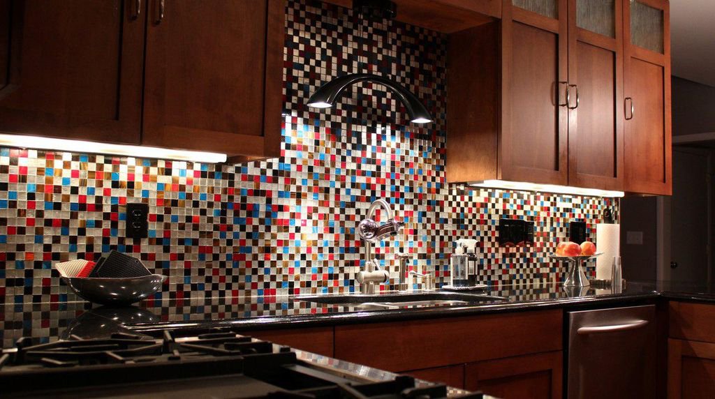 » alt=»Мозаика на Фартук для кухни (175+ Фото): Современно, удобно, практично. Стекло, перламутр или металл?»>