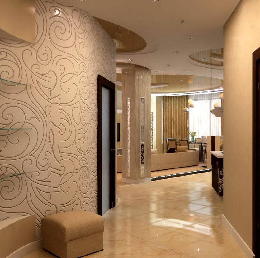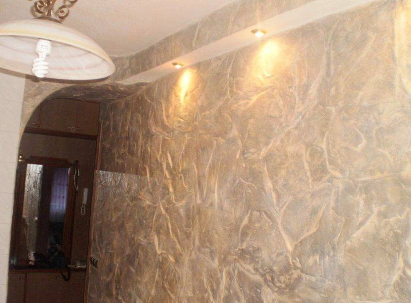 В его основе лежит гипс. Создание интерьера стен в прихожей таким способом встречается достаточно редко из-за высокой стоимости, поэтому лучше использовать его только в отдельных участках, подверженных внешнему воздействию.