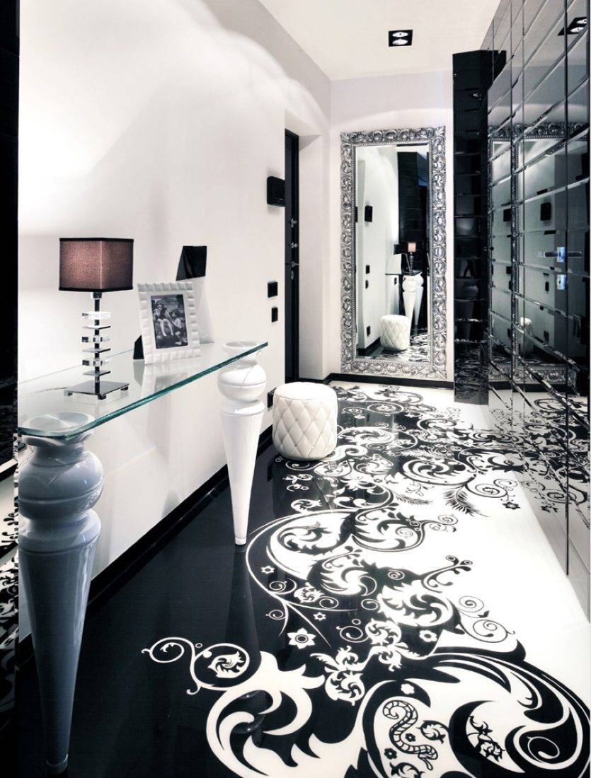 Оригинально смотрятся модели в виде комбинации прямых или волнообразных полосок. Но они подойдут только более просторным помещениям, поскольку в затемненных прихожих не будет нужного фона.